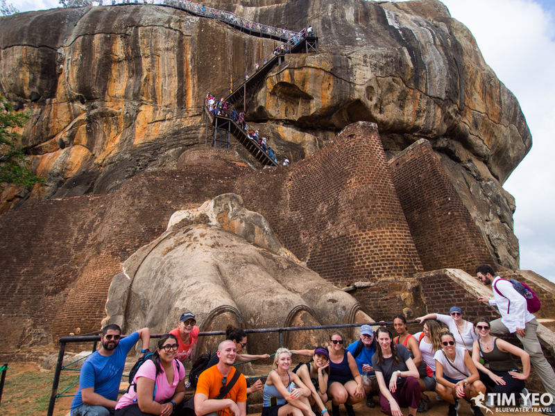 After another delicious buffet breakfast at Cinnamon Lodge, we got an early morning start (leaving at 8 am) to Sigiriya, also known by its nickname Lion Rock. Often touted as the eighth wonder of the world, this UNESCO World Heritage Site is one of Sri Lankas major attractions. It presents as a spectacular pillar of rock visible from miles around. Geologically, Sigiriya is a hardened magma plug of an extinct volcano. Historically, the origins of the remains are disputed and thought to have been either a royal fortress built under the reign of King Kashyapa (477-495 A.D.) or a Buddhist monastery. Upon arrival, we wandered the landscaped gardens at the base of the rock, before climbing numerous stone and metal stairways. The walk to the top was steep with many steps, with some narrow sections and sharp drops protected by metal fences. We passed through beautiful frescoes and a sheer mirror wall before arriving at the massive stone lions paws, which lend the rock its nickname. The old stairway to the top led through the mouth of a crouching lion but today only the huge paws remain, indicating how massive the proportions of the head must have been. The pinnacle, covering an area of 1.6 hectares, was originally completely covered by buildings, but today only the ruins of the royal citadel remain. The top of the rock afforded stunning 360-degree views looking out over Sri Lanka.