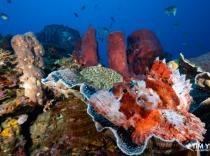 Todays dives in the Bolsel area were absolutely gorgeous. We did two wide-angle dives and two macro dives. There were comparisons to Fiji and the Red Sea after the reef dives due to the colorful soft coral reefs and the amount of marine life. Endless schools of bright anthias were swarming the reefs and surrounding divers at many points on the dives. On the macro dives, the guides found many sought-after critters like skeleton shrimp and hairy shrimp.