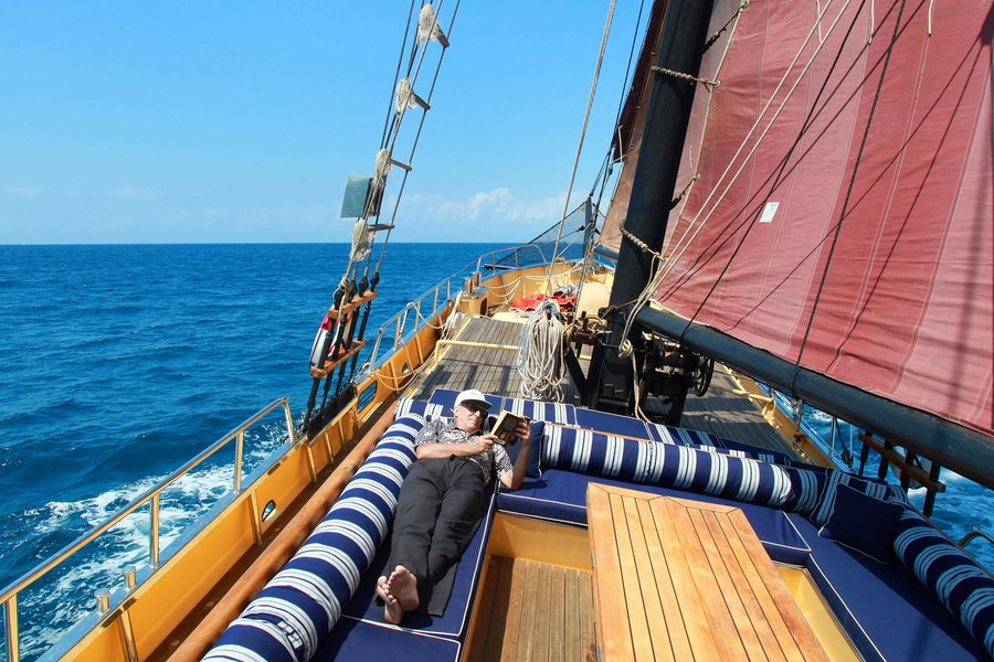 Adelaar is a luxury liveaboard sailing Indonesia’s stunning waters, offering world-class diving, elegant cabins, gourmet dining, and unforgettable adventures to Komodo, Raja Ampat, and beyond.