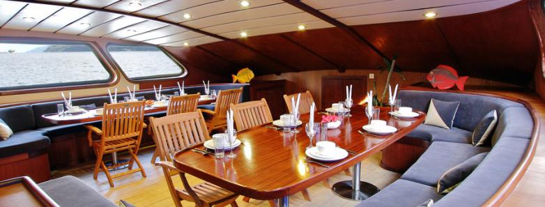 The chefs aboard the S.Y Sea Star and S.Y Sea Bird prepare diverse creations for every meal aboard. Using local ingredients, a mouth-watering blend of authentic Creole cuisine and internal staples is created. Breakfast typically features fresh fruit alongside the chef's preparations, while lunch and dinner are served buffet-style and offer a culinary tour of the archipelago with influences from all around the world.