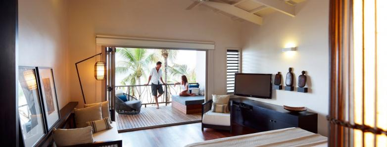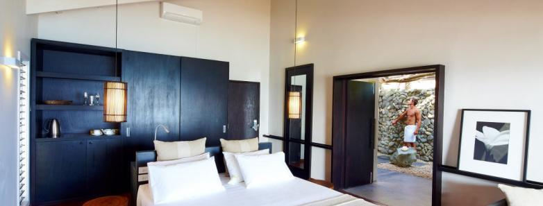 The 100 square meter villas feature original artworks and decor reflecting Fiji's historic past. Private plunge pools open directly on to elevated decks with panoramic ocean views. All villas are air-conditioned. Other features of the Villa's include: