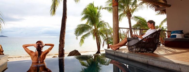 Tadrai Island Resort in Fiji is an exclusive, all-inclusive luxury retreat offering beachfront villas, private plunge pools, gourmet dining, and personalized service in a serene tropical paradise.