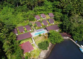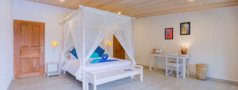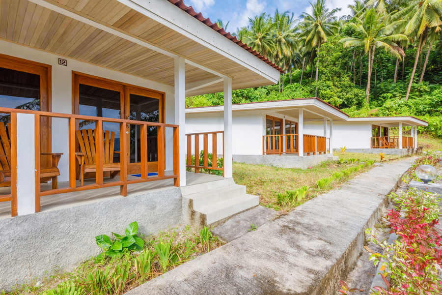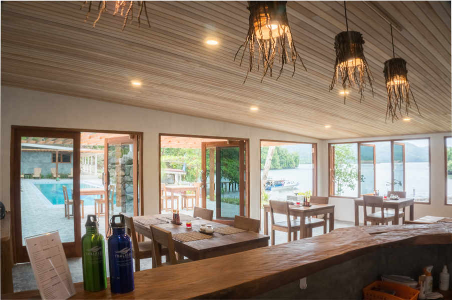 Thalassa Dive Resort Lembeh offers a total of 12 accommodation options, including 9 bungalows and 3 single deluxe rooms. The bungalows are spacious and overlook the ocean and Lembeh Island, with large doors that open from floor to ceiling.