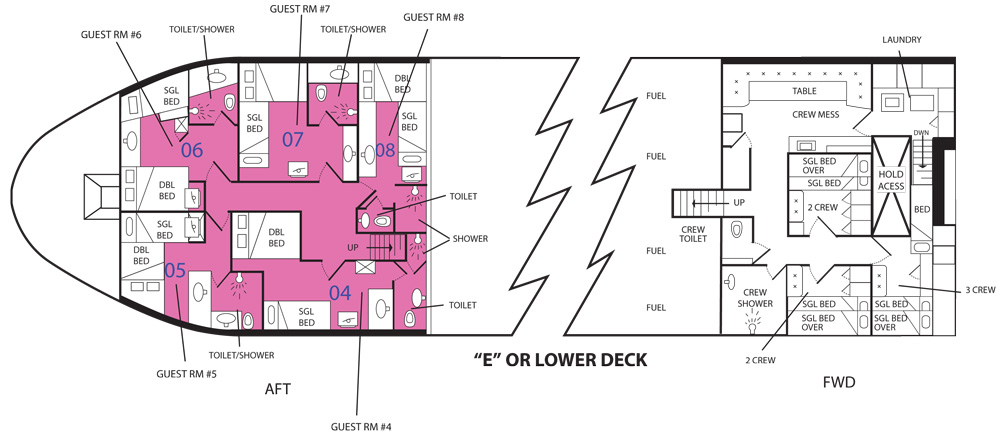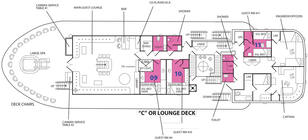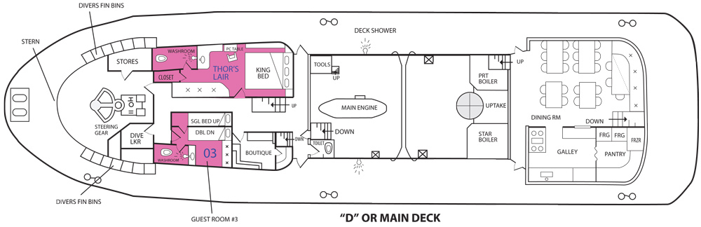 The SS Thorfinn Liveaboard has 10 air-conditioned cabins and 1 exclusive luxury suite.