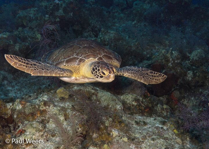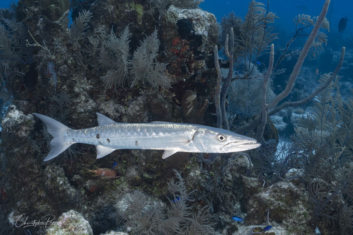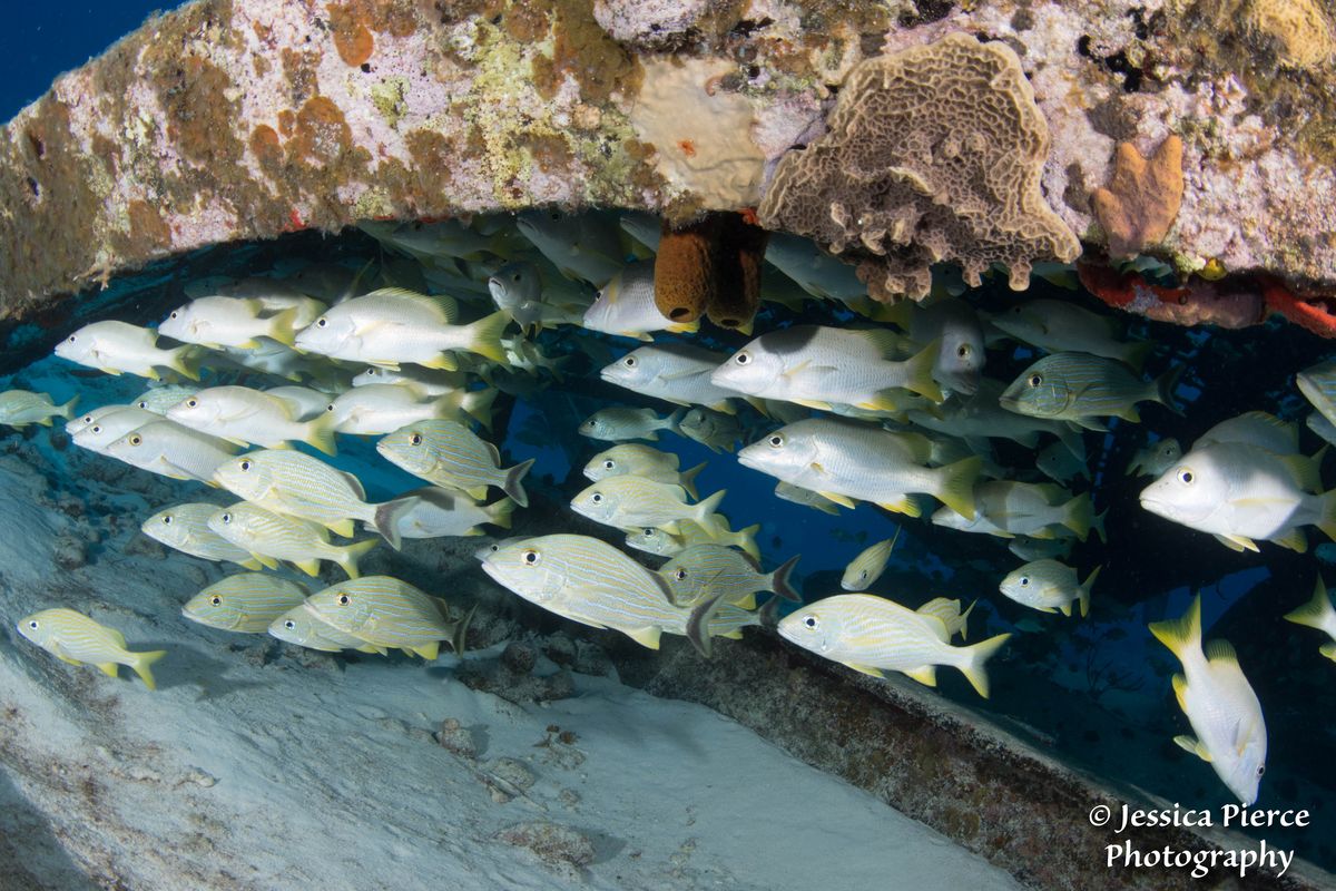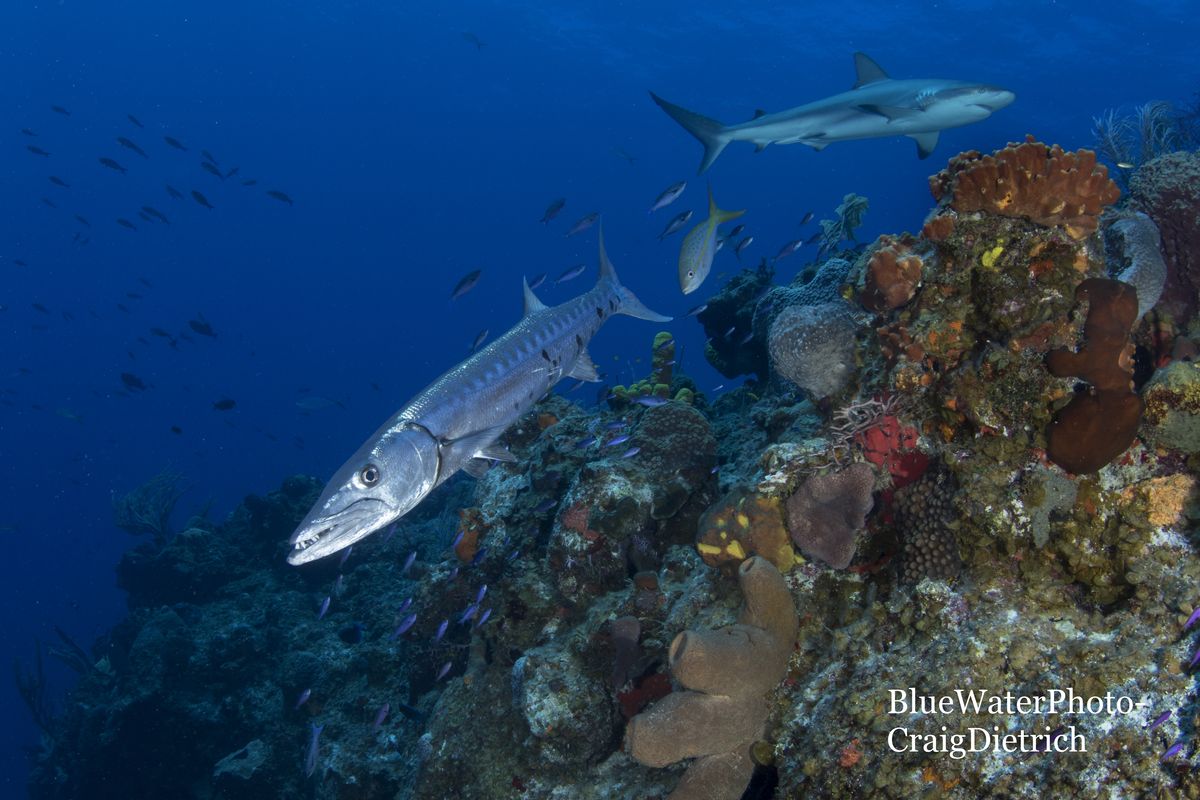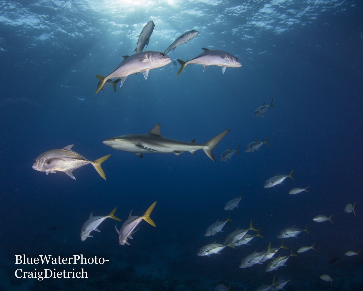 Turks & Caicos is famous for beautiful sheer walls, so most of our dives were approximately 70-80 feet deep, with the walls extending down hundreds of feet. On almost every dive we saw Caribbean reef sharks, and our guests loved the opportunity to take pictures of sharks! We also saw a lot of green turtles, another guest favorite! Fish were plentiful, and beneath the boat seemed to be the meeting place for schooling jacks on almost every dive. One special night dive was at a site where nurse sharks are known to feed, so the sharks gently bumped some of the guests as they fedthe guests took it in stride and enjoyed the experience.