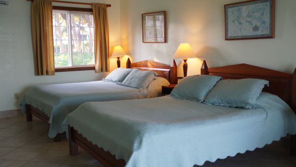 Relax in our spacious beachfront cabanas featuring two queen beds, large bathrooms, and a private oceanfront deck for breathtaking coral reef views.