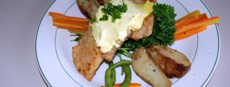 • Entrees vary among seafood, chicken, pork and beef and they will try to accommodate special dietary needs.