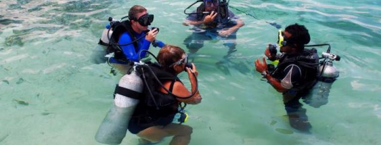 Your dive safety is of the utmost importance to Turneffe Flats. For this reason, and to ensure that you see the best of the marine life, a qualified Divemaster and/or Instructor is in the water at all times. They use the buddy system, conduct safety stops on every dive and plan adequate surface intervals between dives. The staff is First Aid & Oxygen First Aid trained and we are affiliated with Subaquatic Safety Services which operates the Hyperbaric Chamber in Belize.