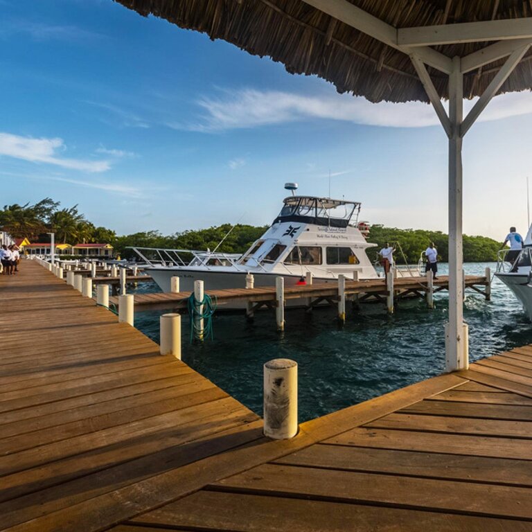 The resort is situated on a private island in the Turneffe Atoll, 35 miles from Belize City. The boat ride takes about 1 hour and 30 minutes and leaves at 3:30 pm on Wednesdays and Saturdays only.