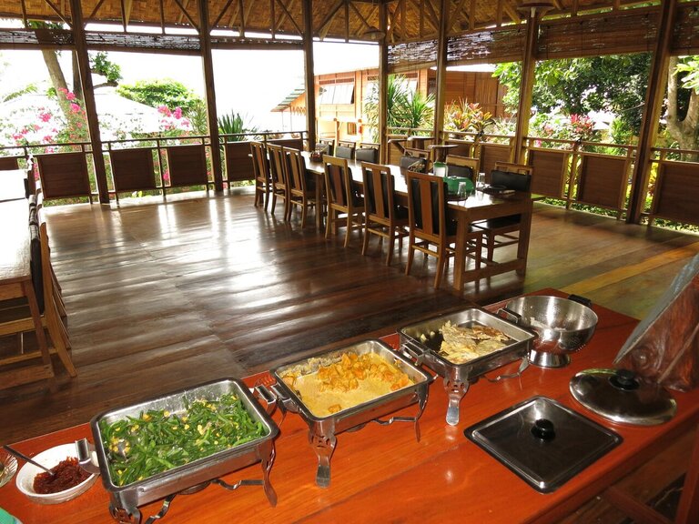The resort's large restaurant offers varied main dishes of fish, chicken, eggs and meat as well as vegetarian dishes such as tofu and tempeh. All main dishes are served with rice, vegetables and salad. The cafe is right by the sea and is a great place to chill with a cold beer, or play a game of darts!