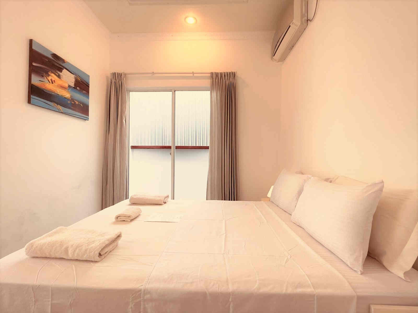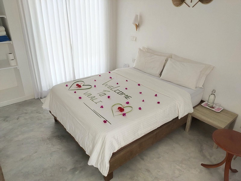 Cozy Standard rooms at Vaali Beach & Dive Lodge offer essential amenities and a natural atmosphere, perfect for couples and small families.