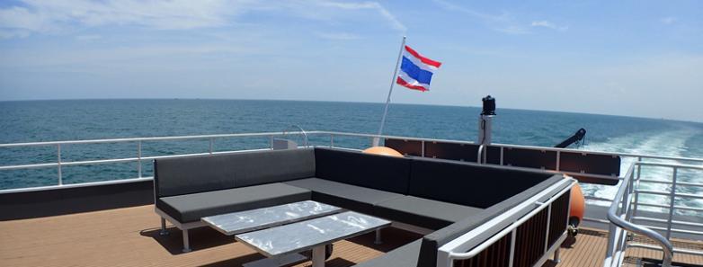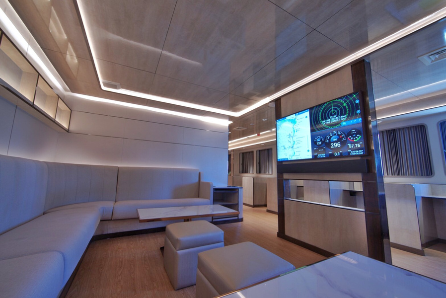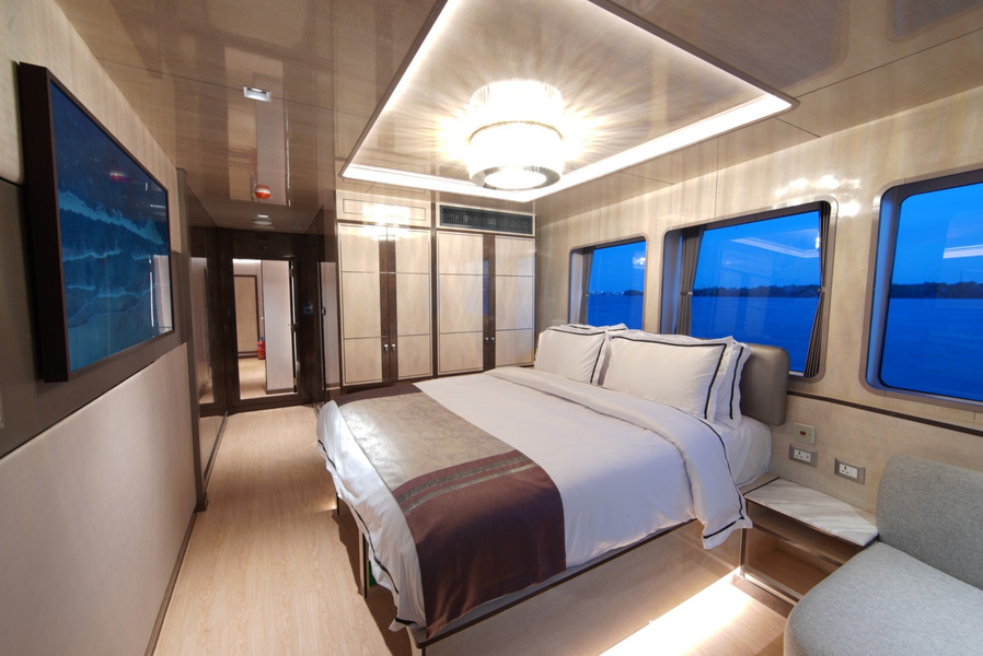 Situated forward on the main deck, these suites offer the ultimate in privacy. Expansive windows offer magnificent panoramic ocean views unique to Velocean. Suites also feature a desk, docking station for music and surround sound speakers.
